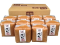 越後みその色は、大豆や糀のたんぱく質と糖分によるメイラード反応により生まれ、主に熟成期間によって変化します。長く熟成させる為、塩分濃度が少し高く、メイラード反応が進み褐色の色が付きます。越後味噌(赤)は特徴は、丸米をふんだんに使用しているため写真のように米の粒が残ります。また、塩分濃度が高くても塩なれがあり、風味とコクが有ります。この越後みそをご使用の時は、好みの味(塩分)でご使用ください。