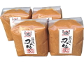 越後みその色は、大豆や糀のたんぱく質と糖分によるメイラード反応により生まれ、主に熟成期間によって変化します。長く熟成させる為、塩分濃度が少し高く、メイラード反応が進み褐色の色が付きます。越後味噌(赤)は特徴は、丸米をふんだんに使用しているため写真のように米の粒が残ります。また、塩分濃度が高くても塩なれがあり、風味とコクが有ります。この越後みそをご使用の時は、好みの味(塩分)でご使用ください。