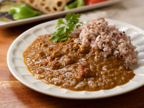 ていねいに炒めた玉ねぎの甘みと爽やかなトマトの酸味、新潟の食材にこだわった鈴木シェフならではのカレーです。