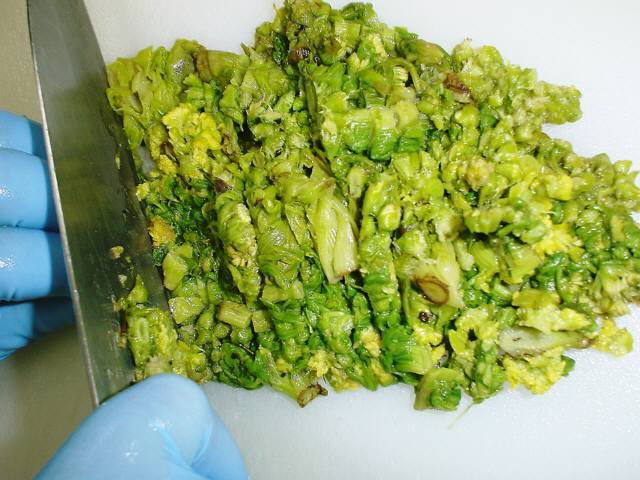 刻んだふきのとうを時間をかけてじっくりと丁寧に練り上げていきます。