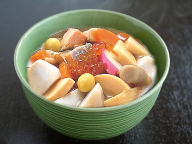 里芋、人参、ごぼう、蓮根など根菜類たっぷりのヘルシーな料理です。